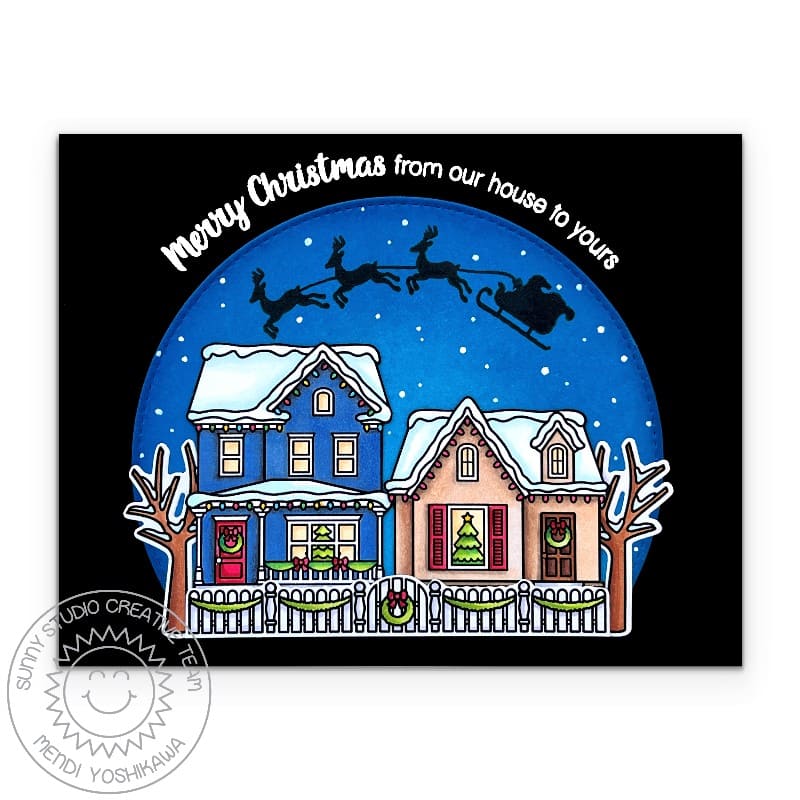 As a follow up to our popular City Streets & Happy Home Stamps, we have a set of neighborhood homes all dressed up for winter in holiday style. This set with a separate fence, post and gate for maximum stamping flexibility. There are also two extra strands of lights to work together with previously released sets.
