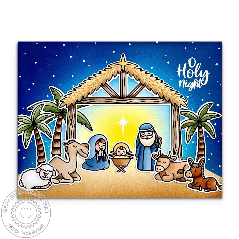 The animals and wise men have come to welcome baby Jesus in this sweet nativity stamp set featuring a stable, Mary, Joseph, 2 different options for the baby Jesus, a camel, cow, donkey, sheep, 3 wise men, a number of shining stars and 3 companion sentiments.